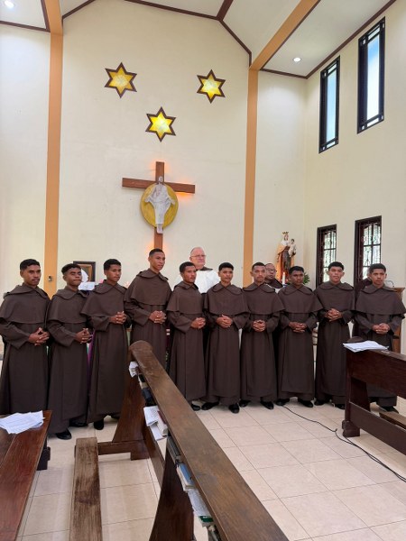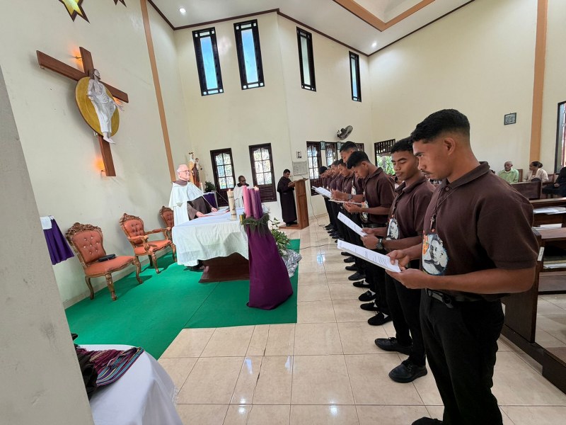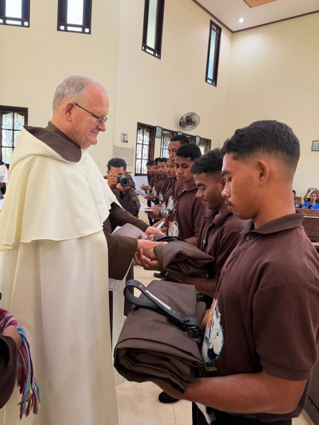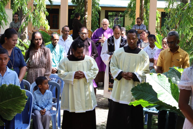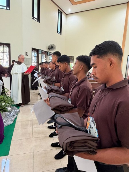 The Carmelites have welcomed the largest group of 10 new novices in Timor-Leste. The ceremony, in which the new novices received the Carmelite habit, was held at St Elias community in Hera. Fr Bruce Clark (Prior Provincial) led the celebration and presented the habit to Ercio Manuel Freitas, João Martinho Falo, Celestino Exposto, Emílio dos Santos Ribeiro, Ricardo Carvalho Saldanha, Lorenço Colo, Zeferino José Carvalho, Domingo dos Santos Martins, Hajetelino Sanches Simões and Tósio João Maria Gutteres Rangel. During the ceremony the new novices undertook to continue their journey of learning to live according to the Carmelite charism of prayer, community and service. The celebration took place during Midday Prayer and was followed by Mass.