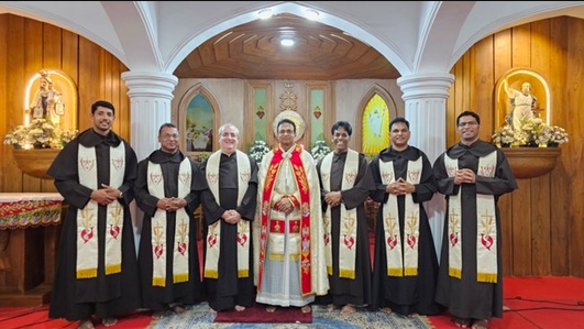 Photo: Front row L-R: Fr Thankachan Njaliayath, Fr Desiderio Martínez (Prior General) & Fr Robert Puthussery (General Councillor for Asia–Australia–Oceania). Back row: Frs Nelson Nedumpurath, Gijo Muthanattu, Sijo Pavartikaran and Thomas Mavunkal.
